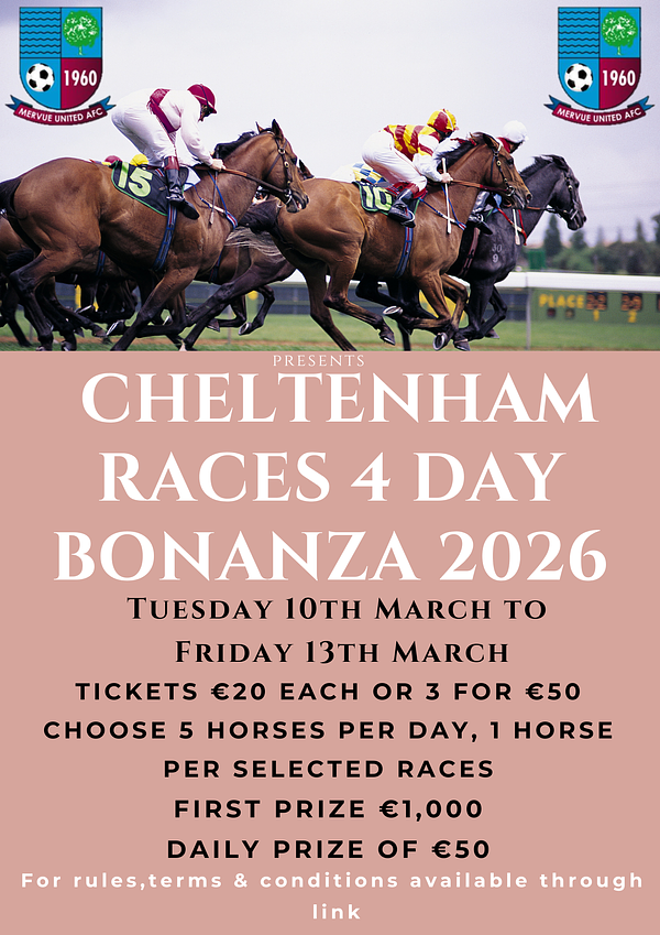 Mervue United will again run our exciting Cheltenham Races Bonanza where you can win up to €1,000.